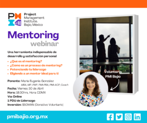 Mentoring es una herramienta poderosa para desarrollar el potencial de las personas. Esta herramienta se centra en la transferencia de conocimientos prácticos a partir de compartir la experiencia de quienes se han enfrentado a retos de gestión de proyectos. Esto se logra a través de un proceso estructurado en el que se establece una relación personal y de confianza entre un mentor y una persona que desea aprender y mejorar su productividad a través de proyectos y liderazgo.